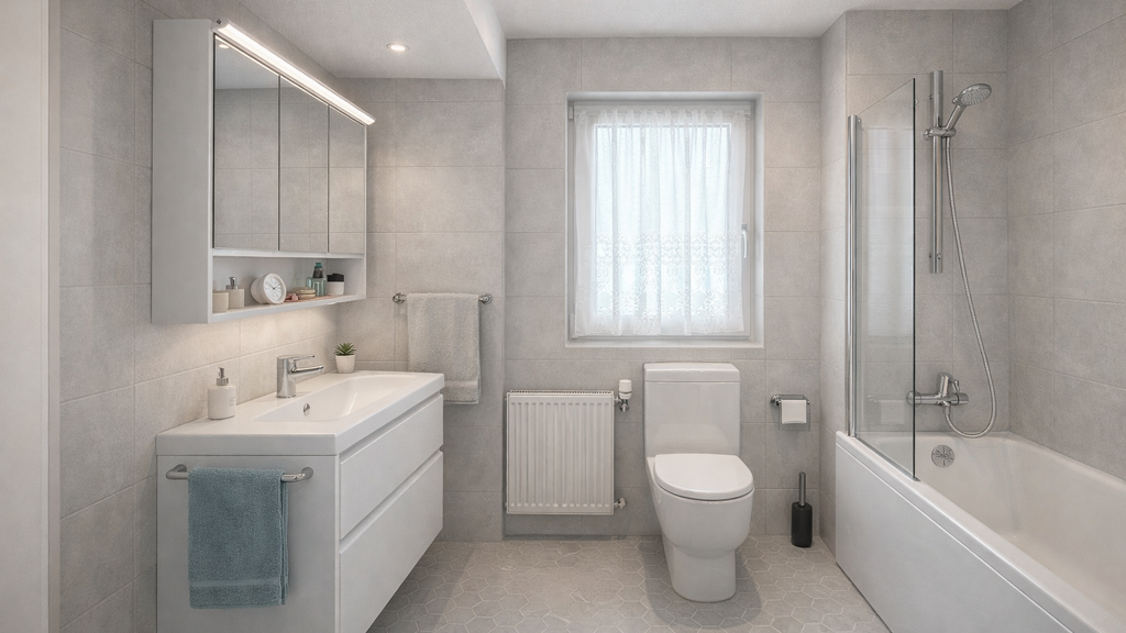 Badezimmer: Badewanne, Bad mit Fenster
