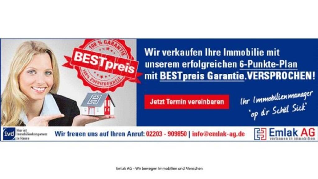 Falls weitere Informationen gewünscht sind, können Sie mich gerne direkt unter meiner Durchwahl +49 (0) 2203 / 94 24 121 oder info@emlak-ag.de jederzeit kontaktieren.