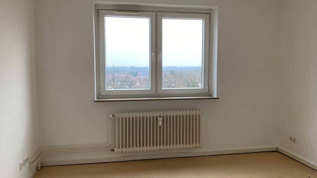 Die helle 2-Zimmer-Wohnung befindet sich im 8. Obergeschoss (Dachgeschoss) und bietet auf ca. 56 m² ein gut geschnittenes Raumkonzept. Beim Betreten der Wohnung gelangen Sie in einen kleinen Flur, der Platz für eine Garderobe sowie einen Schuhschrank bietet und zusätzliche Stauraummöglichkeiten eröffnet. Von hier aus öffnet sich das freundliche Wohnzimmer, das ausreichend Raum für eine gemütliche Sofaecke und einen Essbereich mit Tisch und Stühlen bietet. Vom Wohnzimmer aus haben Sie Zugang zum sonnigen Balkon mit Südausrichtung, von dem aus Sie die startenden und landenden Flugzeuge beobachten können. Ebenfalls vom Wohnzimmer aus betreten Sie die separate Küche, die mit einer Einbauküche ausgestattet ist. Diese verfügt über eine Arbeitsplatte in L-Form, eine Spüle und einen E-Herd; eine vorhandene Nische bietet Platz für einen Kühlschrank. Über einen kleinen Zwischenflur mit weiterer Stauraummöglichkeit gelangen Sie sowohl in das moderne Wannenbad als auch in das Schlafzimmer, das ausreichend Platz für ein Bett und einen Kleiderschrank bietet. Die gesamte Wohnung wurde frisch gestrichen und sämtliche Oberflächen neu lackiert, sodass sie sich in einem sehr gepflegten Zustand präsentiert. Ein separater Kellerraum gehört ebenfalls zur Wohnung und bietet zusätzlichen Stauraum. Die Wohnung wird in dem hier beschriebenen Zustand vermietet.