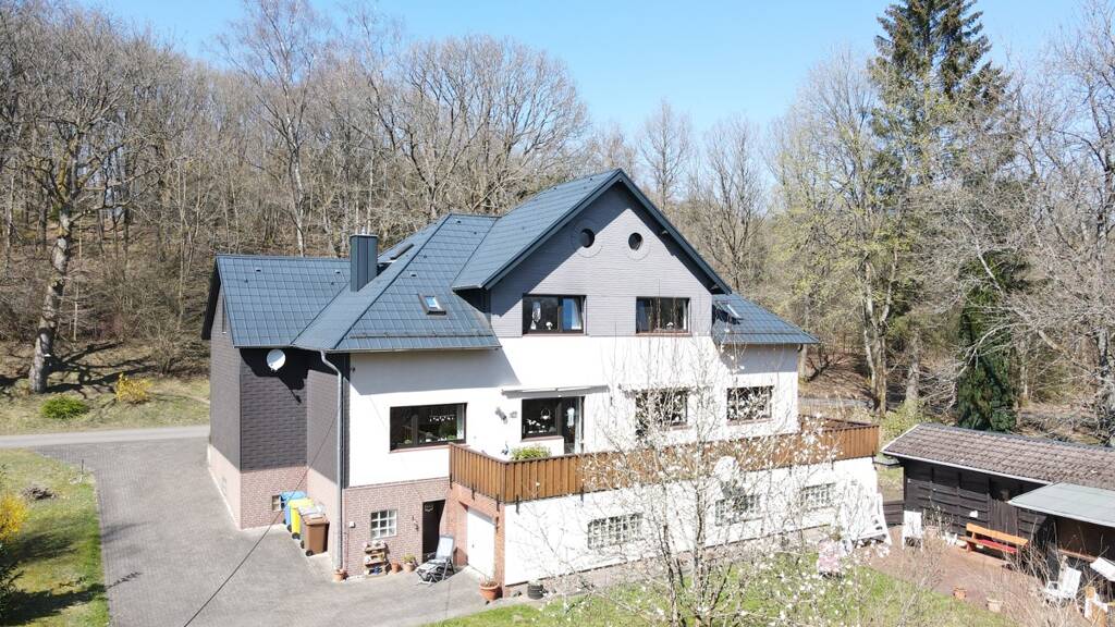 Mit einer großzügigen Wohnfläche von ca. 148qm überzeugt das Haus durch eine durchdachte Raumaufteilung und ein gemütliches Wohnambiente. Der offene Wohn- und Essbereich im Erdgeschoss ist hell und freundlichen gestaltet und überzeugt durch große Fenster, die viel Tageslicht hereinlassen. Von hier aus haben Sie Zugang zu einem großen Balkon, der einen malerischen Blick in den Garten und den umliegenden Wald bietet. Eine große Küche ergänzt das Erdgeschoss.