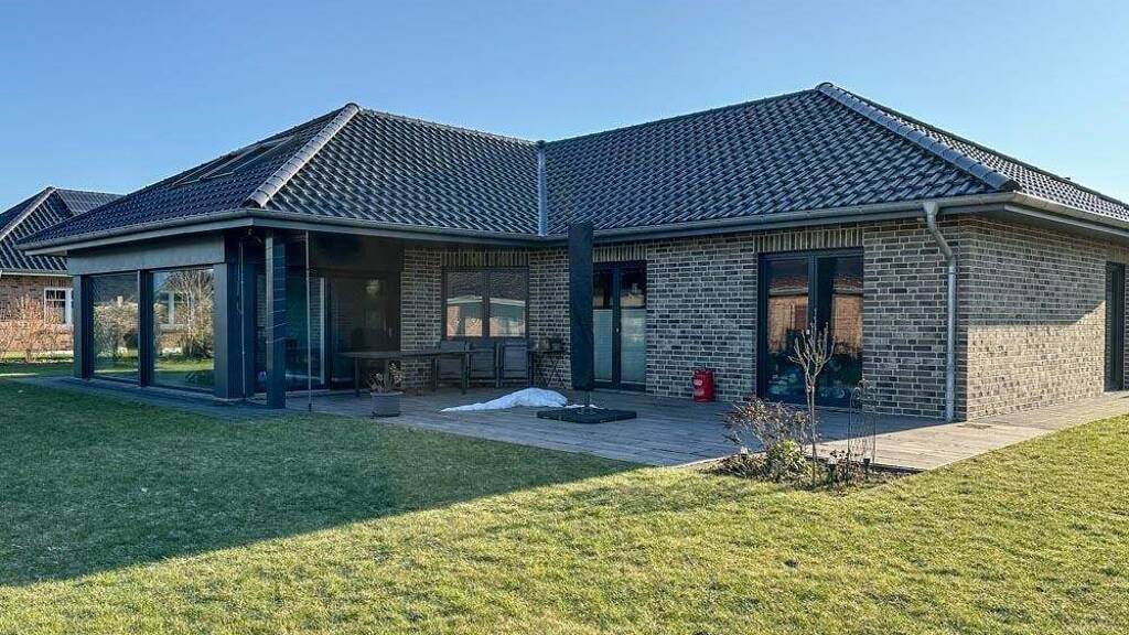 Dieser neuwertige und moderne Bungalow aus dem Baujahr 2022 befindet sich in einem kleinen Neubaugebiet von Ahlerstedt in ruhiger Sackgassenlage. Der durchdachte Grundriss und die spezielle Architektur schaffen ein offenes und zugleich behagliches Wohngefühl. Herzstück des Hauses ist der großzügige Wohn- und Essbereich, der durch die große Fensterfront, den Luftraum im hinteren Bereich des Raumes sowie die im Dach integrierten Veluxfenster mit viel Tageslicht und einer besonderen räumlichen Weite überzeugt. Die offene Küche ist intelligent geplant und gliedert sich durch ihre Anordnung optisch etwas vom Wohn- und Essbereich ab. Ein direkt angrenzender Hauswirtschaftsraum bietet praktische Abstell- und Vorratsmöglichkeiten sowie über die Nebeneingangstür einen komfortablen, wettergeschützten Zugang zum Carport. Der Bungalow verfügt über zwei moderne Duschbäder mit Fenstern sowie drei individuell nutzbare Zimmer, die sich ideal als Schlaf-, Kinder-, Arbeits- oder Gästezimmer eignen. Dieses Objekt vereint modernes Wohnen, Funktionalität und eine ruhige Lage auf gelungene Weise. Die Außenanlagen werden durch das Carport mit angrenzendem Geräteschuppen und einer großzügigen, teilweise überdachten Terrasse komplettiert.