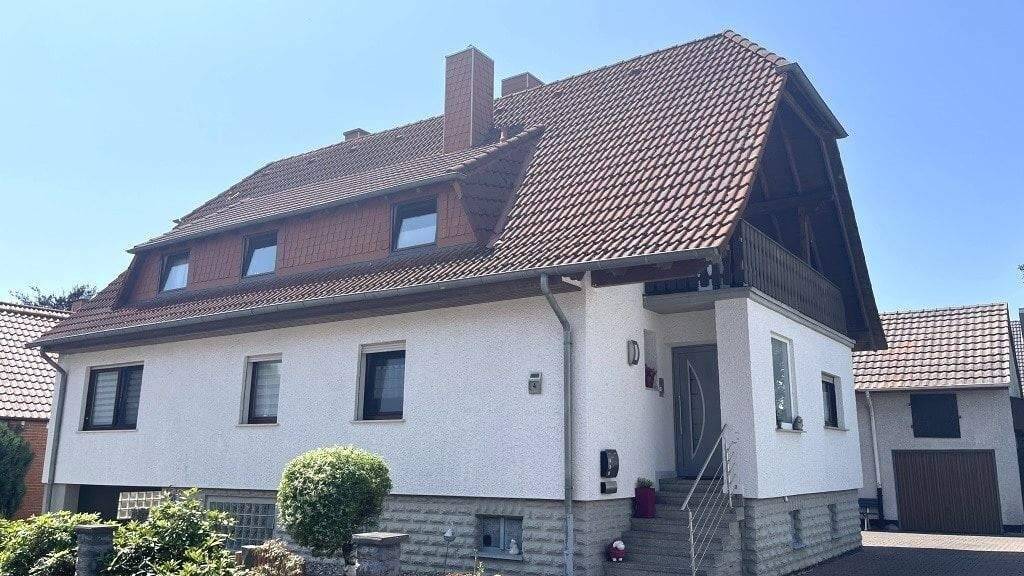 Dieses attraktive Ein- bis Zweifamilienhaus bietet Ihnen viele Entfaltungsmöglichkeiten und wartet darauf von Ihnen entdeckt zu werden! Im Erdgeschoss des Hauses finden Sie einen großen Wohn- und Essbereich mit Kamin sowie einen schönen Wintergarten mit Ausgang auf die Terrasse und den pflegeleicht angelegten Garten. Weiterhin erwartet Sie auf dieser Ebene eine freundliche Küche, ein Schlafzimmer, ein Kinder-, Gäste- oder Arbeitszimmer und ein Bad mit Dusche und Badewanne. Das Dachgeschoss verfügt über ein großes Wohnzimmer mit Zugang auf den Balkon, eine Küche, ein Esszimmer, ein Schlafzimmer, ein Kinder-, Gäste- oder Arbeitszimmer mit angrenzendem Balkon sowie ein weiteres Bad mit Badewanne. Und das ist noch längst nicht alles! Die Immobilie ist komplett unterkellert. Im Kellergeschoss finden Sie ein großes Hobbyzimmer, vier Keller- oder Abstellräume, den Heizungsraum und die Waschküche. Der schöne Garten kann vielseitig genutzt werden, z. B. als Nutzgarten, für die Kinder mit ausreichender Spielfläche, zur Entspannung oder für gemeinsame Abende mit Familie und Freunden beim gemütlichen Verweilen. Zwei Garagen und zwei Stellplätze komplettieren dieses Angebot. Zum Schutz der Privatsphäre der Eigentümer werden keine Innenaufnahmen gezeigt. Sie erhalten weitere Bilder nur auf Anfrage. Nehmen Sie einen gemeinsamen Besichtigungstermin wahr. Wir freuen uns auf Ihren Anruf!