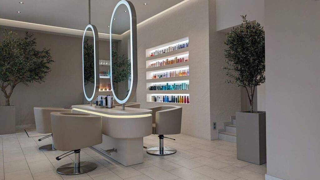 * Nutzfläche: ca. 58,88 m² * Zentrale Frequenzlage im Andräviertel * 2 Friseurwaschplätze * maßgefertigte Frisierinsel mit indirekter Beleuchtung und 4 Arbeitsplätzen, zusätzlich indirekte Beleuchtung bei jedem Spiegel * Rezeption mit hochwertiger Marmorpulveroberfläche * Verkaufsregal mit hochwertiger Marmorpulveroberfläche * integriertes Regalsystem mit indirekter Beleuchtung * Deckenspots * Bose Soundanlage mit Subwoofer * komplett ausgestatteter Farb- und Arbeitsbereich im hinteren Teil des Salons, Teeküche * Waschmaschinen- und Trockneranschluss * 2 getrennte Toiletten