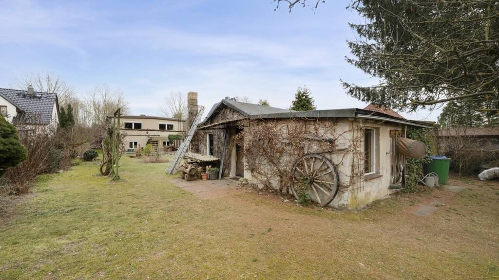 Alternativ wäre auch ein Abriss des Gartenhauses sowie eine ergänzende Bebauung im hinteren Grundstückteil denkbar. Mehrere Nachbarn haben die großen Grundstücke bereits entsprechend ausgenutzt. So könnten auch zwei Familien hier ein neues Zuhause finden.