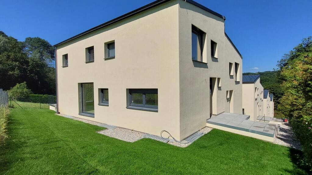 Jedes Haus bietet genügend Platz - vier Räume, von denen drei als Schlafzimmer dienen können. Diese Räume, die mit hochwertigem Parkett ausgelegt sind, sind separat begehbar. Die hellen Badezimmer mit Tageslicht sind im Obergeschoss situiert und bieten genügend Komfort für die ganze Familie. Eine Luft-Wärmepumpe sorgt für eine hocheffiziente Heizung, die Technik befindet sich im eigenen Technikraum im Kellergeschoss.