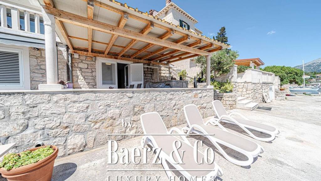 pkorcula island, korcula town, apartments on two floors by the sea near the old town of korcula/pp the property is a two-story apartment divided into two apartments, each apartment on one floor. the apartment is located in the basement of an old family house built in 1930. in luka bay, right on the seashore. in front of the apartment is a landscaped shore with a sunbathing area and a pier for mooring boats. entry into the sea is ensured by two pebble beaches, the sea gently slopes from the edge of the shore to greater depths, and the landscaped waterfront, with its height above the sea surface, allows for comfortable boarding of vessels. it is 1200 m from the center of the old town of korcula and is connected by roads and promenades. lucica bay is filled with greenery, has two sandy beaches, promenades along the sea, restaurants and landscaped areas./pp the apartment on the upper floor has an area of 77 m2 with an adjoining terrace of 30 m3. it is oriented to the southeast and offers a view of lucica bay and peljesac. the apartment is entered through a hallway from which other rooms are accessed. the central room is a living room connected to the dining room of 30 m2, glazed with panoramic windows overlooking the terrace and luka bay. the apartment has two bedrooms, a kitchen with a pantry, a bathroom and a toilet. it is fully furnished and decorated, air-conditioned with new pvc joinery, and the built-in underfloor heating in the bathroom, toilet, hallway, living room and dining room provides a comfortable and pleasant stay even during the colder part of the year. next to the apartment is a 52 m2 yard planted with ornamental plants and providing an oasis of peace in the shade of the surrounding trees./ppthe ground floor apartment has an area of 45 m2 and a covered terrace of 15 m2, also oriented to the southeast. the apartment has a living room, kitchen, bedroom and bathroom with toilet. it is fully furnished and decorated, air-conditioned with new pvc joinery./pp such an exceptional property rarely appears on the market. with its location in a quiet bay luka by the sea with a well-maintained coast and a 15-minute easy walk to the center of the old town of korcula, it offers peace and comfort necessary for living and vacationing, and in the immediate vicinity of the old town, which is always full of life and people. the well-maintained coast in front of the house is a special feature of this property and allows its owner to enjoy the sea and the seaside atmosphere in the immediate vicinity of their home. by purchasing this property, you are not only buying a living space, but also a part of the story, history and way of life of the old people of korcula. we are at your disposal for all other information./p
