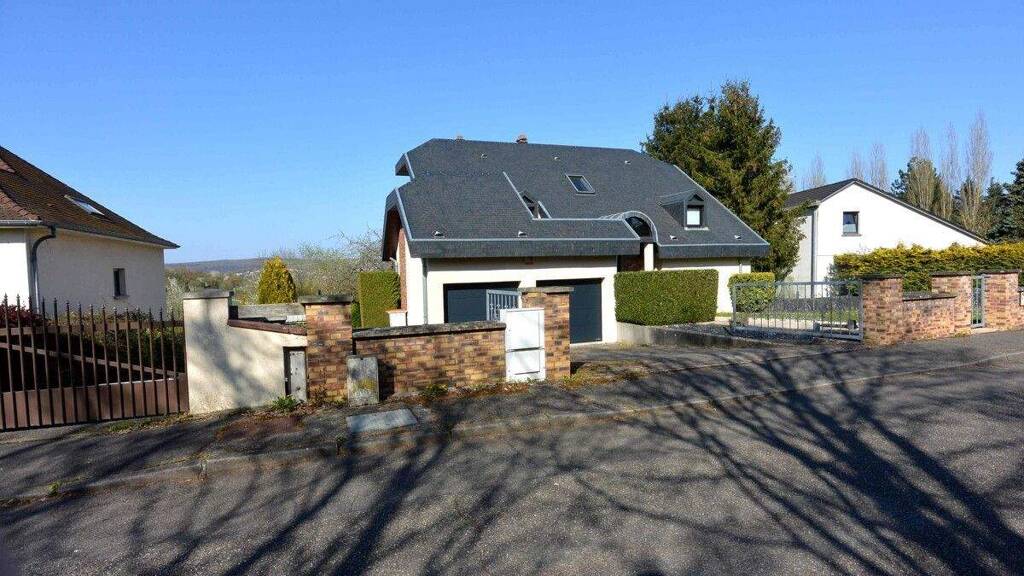 In einer begehrten Wohnlage von Sarreguemines - im ruhigen Vorort Welferding - präsentiert sich dieses freistehende, topgepflegte Architektenhaus als echtes Unikat. Nahezu am Ende einer idyllisch gelegenen Sackgasse thront die außergewöhnliche Immobilie in erhöhter Lage mit kleinem, aber reizvollem Fernblick. Das im Jahr 1984 massiv mit 24 cm Porotonstein und zusätzlicher 8 cm starker Styropor-Außenisolation errichtete Haus bietet auf fünf offen-versetzten Wohnebenen rund 220 m² stilvolle Wohnfläche auf einem großzügigen Grundstück von 1.200 m².