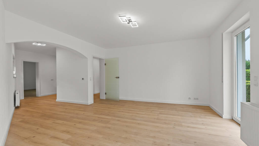 Mit einer großzügigen Wohnfläche von rund 77 m² bietet diese frisch renovierte 3-Zimmer-Wohnung eine durchdachte Raumaufteilung und moderne Ausstattungsmerkmale. Der großzügige Wohnbereich, der sich offen zur Küche hin erstreckt, bildet das Herzstück der Wohnung. Zwei separate Ausgänge führen direkt auf die teilweise überdachte Terrasse, von wo aus Sie in den eigenen kleinen Gartenbereich gelangen. Der Garten bietet Ihnen eine ruhige Oase zum Entspannen und ist durch eine Hecke gut abgegrenzt.