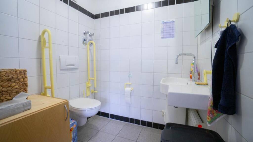 Es befindet sich eine Toilette mit Waschbecken für Sie und Ihre Kunden im hinteren Teil der Ladenfläche.