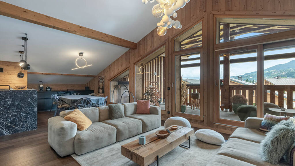 Just a few minutes walk from the historic centre of Megeve, these chalets nestle on the foothills of the Jaillet and Christomet massifs. Constituting a hamlet of 4 prestigious chalets composed of apartments of great standing. Set back from the road, ideally exposed and sheltered from view by a fringe of vegetation, each chalet preserves comfort and privacy.