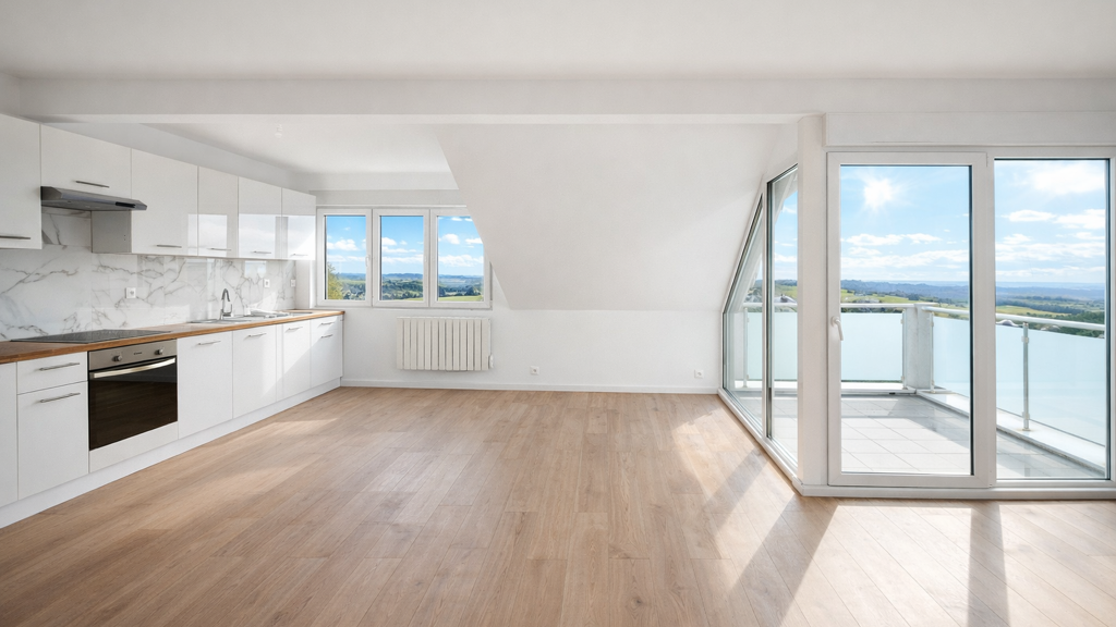 Wunderschöne Wohnung im obersten Stockwerk einer modernen und kleinen Wohnanlage mit nur 5 Einheiten in Œting. Sie besteht aus einem Eingangsbereich sowie einer vollständig ausgestatteten, offenen Küche, die in ein großzügiges Wohn- und Esszimmer übergeht und direkten Zugang zu einem Balkon mit freiem, panoramischem Ausblick auf die Umgebung bietet. Der Schlafbereich umfasst vier Schlafzimmer sowie zwei Badezimmer und bietet somit hohen Komfort und eine optimale Funktionalität im Alltag. Zwei Stellplätze runden dieses Angebot ab. Eine helle Wohnung mit großzügigen Raumverhältnissen und einem angenehmen Wohnambiente – ideal für eine Familie, die Ruhe sucht und dennoch in der Nähe aller Annehmlichkeiten bleiben möchte.