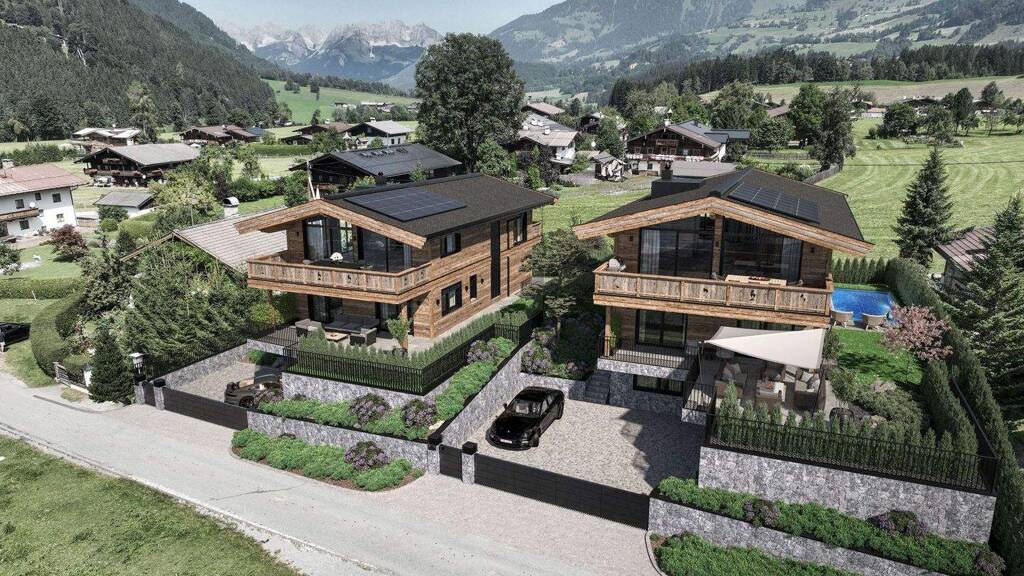 In einer der begehrtesten Lagen Aurachs präsentiert sich dieses Ensemble aus zwei außergewöhnlichen Chalets, die in architektonischer Perfektion, alpinem Charme und modernster Ausstattung eine Symbiose auf höchstem Niveau vereinen. Eingebettet in die malerische Bergwelt, eröffnet sich von sämtlichen Ebenen ein unvergleichlicher Panoramablick auf den majestätischen Wilden Kaiser, das Kitzbüheler Horn sowie die sonnenverwöhnten Südberge.