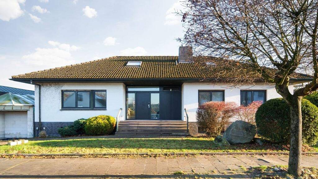 - Wohnfläche ca. 238 m² - Ca 525 m² Nutzfläche - Grundstück 1.632 m² - Repräsentatives Haupthaus mit separatem Nebengebäude für gewerbliche Nutzung - Zeitloser und ansprechender Travertinboden - Elektrik weitestgehend erneuert - Neue Fenster - Doppelgarage mit Anbindung an die Gewerbefläche, Doppelcarport sowie eine weitere Einzelgarage - Baujahr 1969 - Kaminzimmer sowie ein weiterer Außenkamin - Neue, hochwertige Einbauküche inkl. E-Geräten