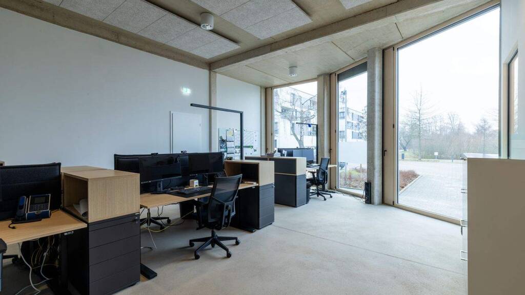 Diese moderne und hochwertig ausgestattete Bürofläche im Erdgeschoss befindet sich in einem 2023 neu errichteten Bürogebäude im Wissenschaftspark Osnabrück.