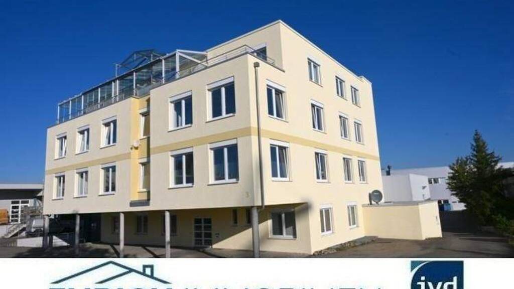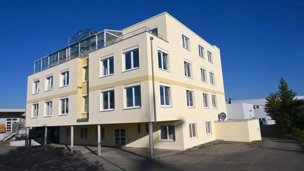 Neben mehreren großen Hallenflächen mit moderner Infrastruktur, Starkstromanschlüssen und 4 x 4 m großen elektrisch betriebenen Sektionaltoren, die auch die Zufahrt mit großen Fahrzeugen in die Hallen ermöglichen, verfügt das Gewerbeanwesen über eine exklusiv ausgestattete Penthouse-Wohnung mit über 232 m² reiner Wohnfläche.