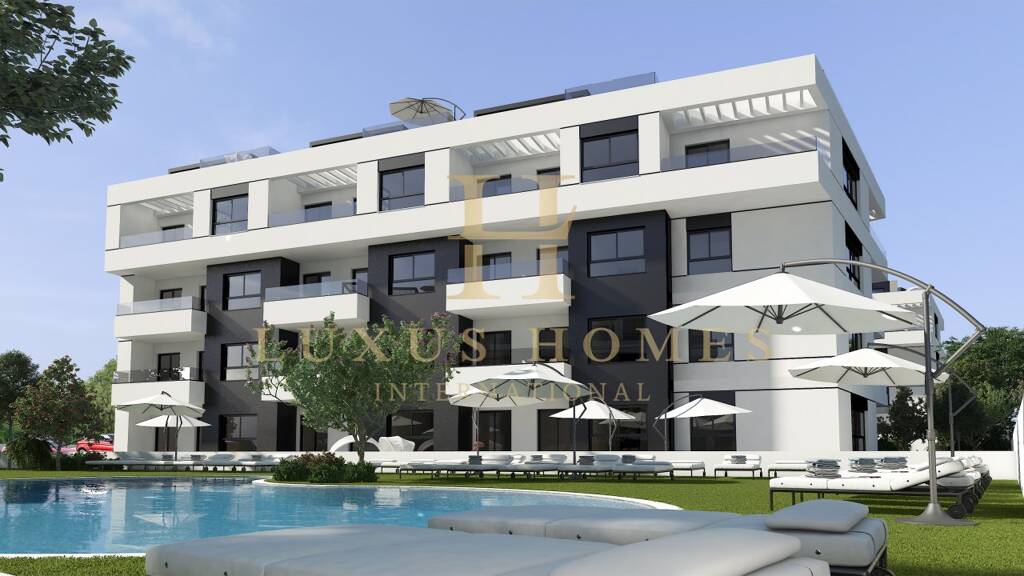 Luxuriös möblierte Wohnung in der mittleren Etage mit Gemeinschaftspool, großer Terrasse und Fitnessraum in Strandnähe