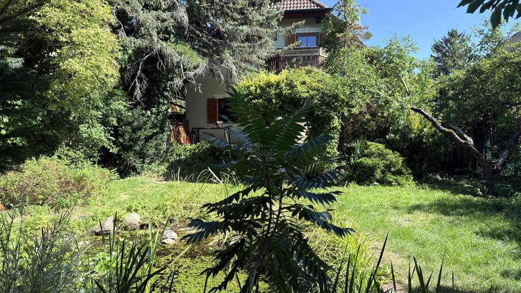 and has a correspondingly large, as can be seen in the pictures, fantastically beautiful garden, with lots of greenery and above all with a heart-winning pond in its center.