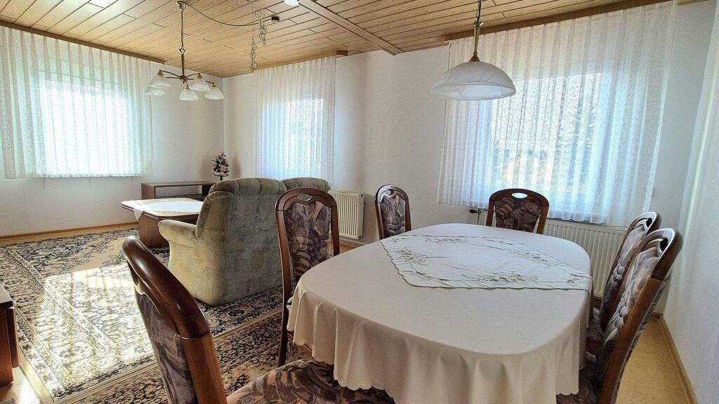 Ein besonderes Highlight ist die großzügige, überdachte Dachterrasse. Zur Wohnung gehören außerdem eine Garage, ein gepflegter Garten zur Mitbenutzung sowie ein Gewölbekeller, der praktischen Stauraum bietet.