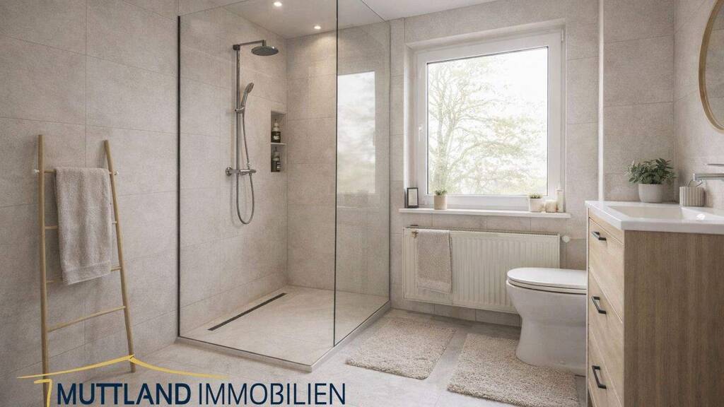 Im Obergeschoss stehen Ihnen vier gut geschnittene Zimmer zur Verfügung. Ob Kinderzimmer, Homeoffice, Gästezimmer oder Hobbyraum - hier findet jede Lebenssituation ihren Platz. Das Badezimmer ist funktional ausgestattet mit Badewanne, Dusche und WC. Große Fensterflächen sorgen in allen Räumen für viel Tageslicht und ein angenehmes Wohnklima.