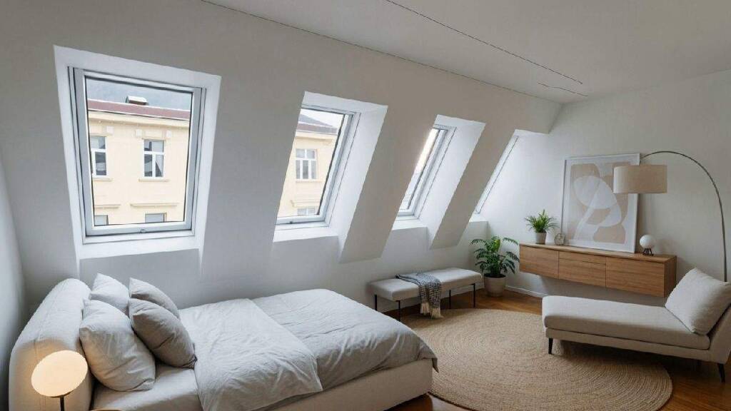 Im neu ausgebauten Dachgeschoss befinden sich insgesamt 6 exklusive Wohnungen, davon 3 stilvolle Maisonettwohnungen. Besonders hervorzuheben ist die Top 23, die mit einer großzügigen Dachterrasse und einem atemberaubenden 360-Grad-Blick über Wien beeindruckt ein einzigartiges Wohngefühl hoch über den Dächern der Stadt.