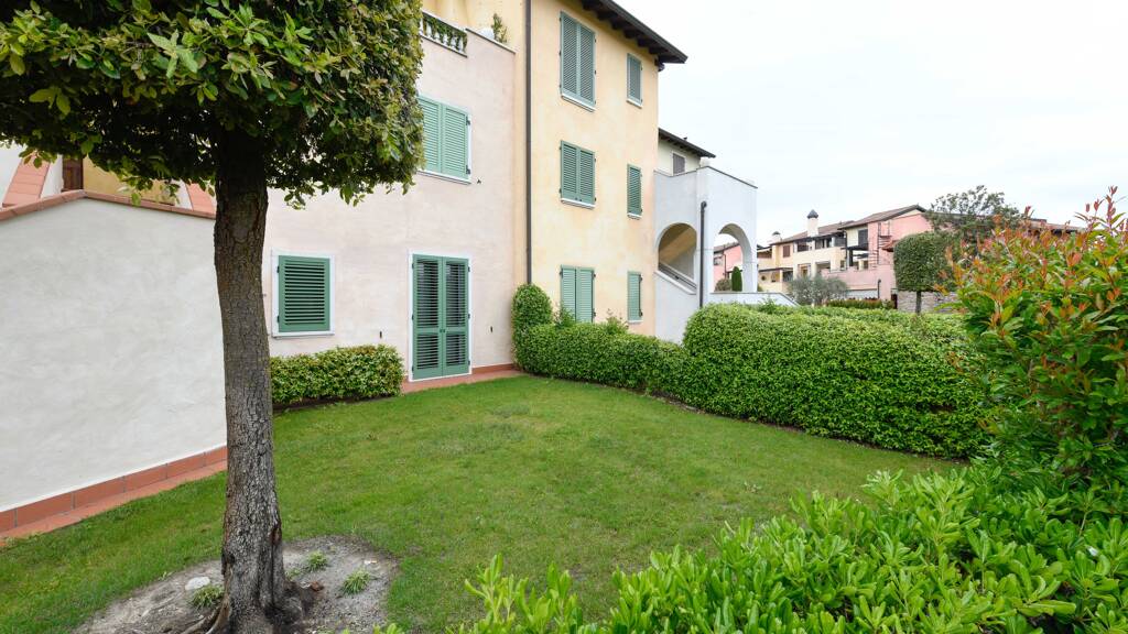 Ref: PR-024-68 Drei-Zimmer-Wohnung mit Terrazze und Doppelgärten im Garda Resort Village, einer herrlichen Residenz mit einem riesigen Park, Schwimmbädern, einem Restaurant und einer breiten Palette an Sport- und Freizeiteinrichtungen. Eine wunderbare Lösung für Ihren Urlaub am See. Die Erdgeschosswohnung wird möbliert und mit hochwertigen Möbeln verkauft. Der Wohnbereich ist groß und hell und verfügt über eine Küchenzeile und große französische Türen, die auf die Veranda und den privaten Garten mit Blick auf einen der Swimmingpools der Residenz führen. Die Veranda ist 14 m2 groß und mit einem Grill ausgestattet, ideal für Mahlzeiten im Freien und um den Sommer zu genießen. Der Schlafbereich ist durch einen Flur vom Wohnbereich getrennt. Zwei Schlafzimmer, das Hauptschlafzimmer mit französischem Fenster für den Zugang zum Garten hinter dem Haus, immer zur privaten Nutzung, Badezimmer mit Badewanne mit Fenster. Eigener überdachter Parkplatz. Die Wohnung ist mit einer unabhängigen Warm-/Kaltklimaanlage mit Wärmepumpe ausgestattet. Die Residenz liegt am Südufer des Gardasees, umgeben von viel Grün, in zentraler Lage zu den beiden Städten Peschiera del Garda und Sirmione. Seine Lage ermöglicht es Ihnen, die Vorteile der umliegenden Touristenorte zu genießen, ohne auf die Ruhe zu verzichten. Die Architektur der Gebäude, die Szenografie der von Trockenmauern begrenzten Schwimmbäder, die sorgfältige Gestaltung der Gärten mit Olivenbäumen und anderen mediterranen Essenzen schaffen eine sehr eindrucksvolle Atmosphäre. Am Eingang des Komplexes gibt es einen bemannten Concierge und im Inneren verläuft die Zufahrtsstraße entlang eines Umfassungsrings, der das Dorf von der Anwesenheit von Autos befreit, sodass Sie in absoluter Ruhe spazieren und die Innenbereiche genießen können, mit größerer Sicherheit für Familien und Kinder jeden Alters. Innerhalb der Residenz finden wir Schwimmbäder, Tennisplätze, einen Fußballplatz, Beachvolleyballplätze, Bocciaplätze, einen Kinderspielplatz, eine Bar und ein Restaurant-Pizzeria sowie einen Bereich für private Feiern: Klima, Dekoration und Lage machen den Unterschied und Machen Sie es einzigartig. Inklusivleistungen: • Concierge 7 von 7 mit ganzjähriger Zugangskontrolle und Überwachung • große Schwimmbäder mit großen Solariumflächen und Rettungsschwimmerdienst • Gartenarbeit sowohl für die öffentlichen Grünflächen als auch für die privaten Gärten • verschiedene Reinigungs- und Wartungsdienste • Mietvertragsverwaltung für Vermieter, die vermieten möchten.