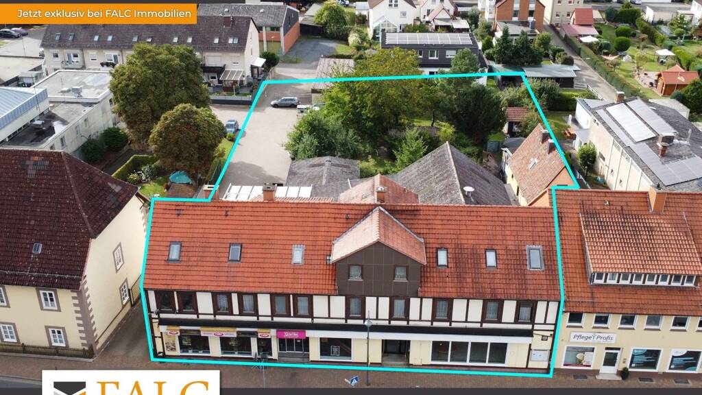 Angeboten wird ein vielseitig nutzbares Wohn- und Geschäftshaus auf einem großzügigen Bauland Grundstück von rund 2.662 m² bestehend aus 3 Flurstücken. Die Immobilie befindet sich in einer stark frequentierten und zugleich etablierten Lage von Nörten-Hardenberg, wodurch sich sowohl die Wohn- als auch die Gewerbeflächen ideal vermarkten lassen. Insgesamt verfügt das Gebäude über eine Wohnfläche von etwa 510 m² sowie über rund 540 m² Gewerbefläche. Ergänzt wird das Angebot durch ein weiteres kleines Wohnhaus mit einer Wohnfläche von etwa 80 m², welches sich auf dem angrenzenden Grundstück befindet und derzeit vermietet ist. Der allgemeine Zustand des Objektes ist modernisierungsbedürftig.