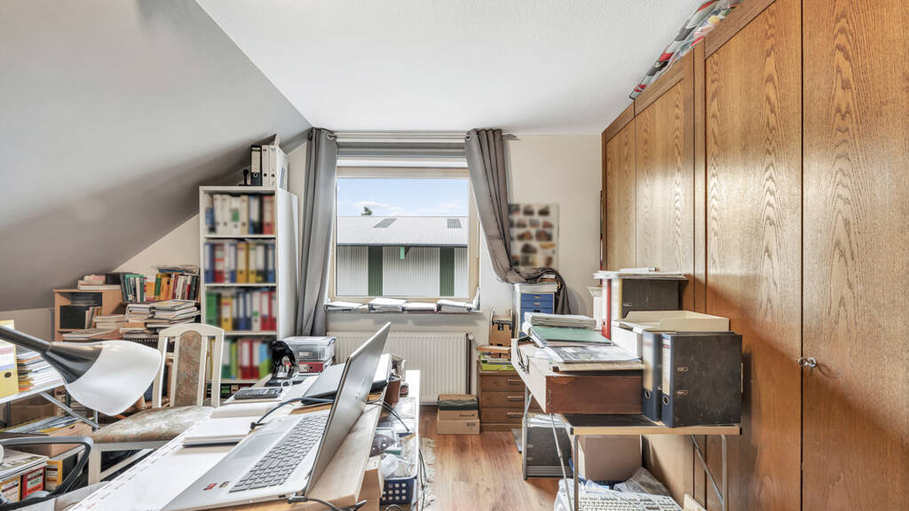Die obere Etage eröffnet spannende Möglichkeiten: Drei großzügige Räume können flexibel als Schlafzimmer, Arbeits- oder Hobbyzimmer genutzt werden. Ein kleinerer Raum bietet das Potenzial, in eine Küche umgestaltet zu werden, sodass die gesamte Etage als eigenständige Wohnung genutzt werden könnte. Diese Option eröffnet zahlreiche Perspektiven - von der Vermietung über Wohnraum für Angehörige bis hin zur Nutzung als Büroetage.