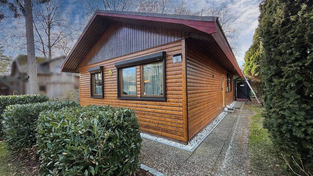 Das Haus ist in Holzbauweise errichtet und vermittelt eine warme, gemütliche Wohnatmosphäre. Ein Kamin im Wohnbereich sorgt insbesondere in den kälteren Monaten für Behaglichkeit und unterstreicht den wohnlichen Charakter des Bungalows. Ein besonderes Highlight ist der angrenzende, beheizte Wintergarten mit zusätzlichen ca. 6 qm, der zusätzlichen Raum bietet und in Kombination mit der großzügigen Terrasse (ca. 8,7m Länge und 3,3m Tiefe) ideale Voraussetzungen für entspannte Stunden im Freien schafft.