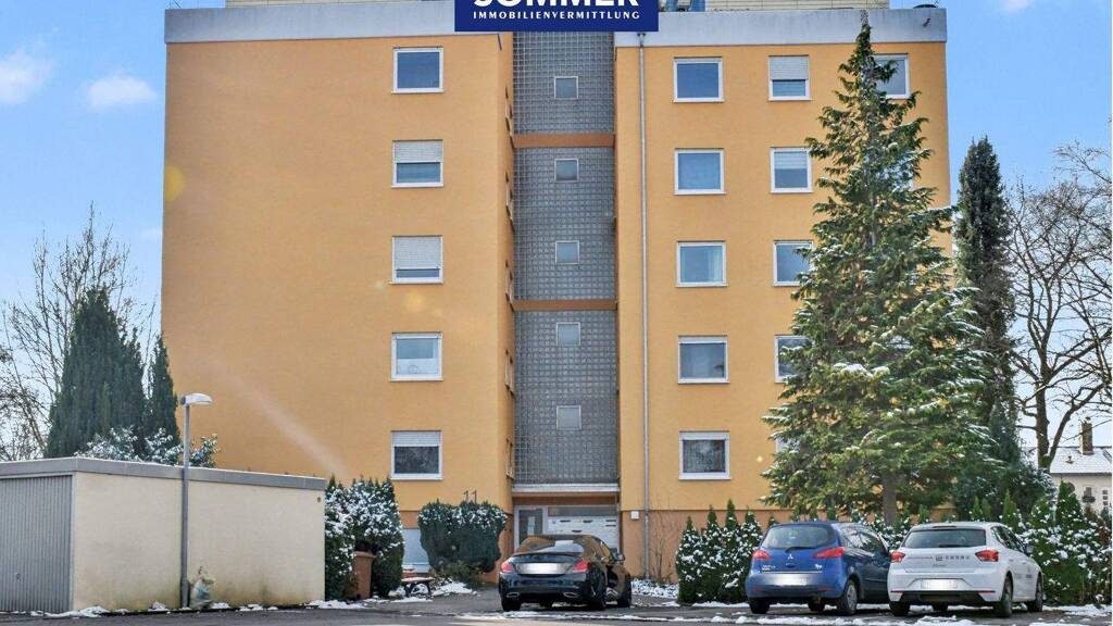 Die Highlights im Überblick: - ca. 85?m² Wohnfläche im 2. OG eines gepflegten 25-Parteien-Hauses (Baujahr 1975, WEG mit 3 Häusern und insg. 72 Wohnungen) - Balkon mit Ausblick (ca. 7 m² Grundfläche; zu 50% in der Wohnfläche) - überdacht, mit Süd-Ost-Ausrichtung - Aufzug - Abschließbare Einzelgarage - 4 schöne Zimmer, Tageslichtbad und Küche inkl. Einbauküche - Renovierungsbedürftig: gestalten Sie die Wohnung nach Ihren Vorstellungen - Kellerabteil - Professionelle Verwaltung durch eine bekannte Hausverwaltung
