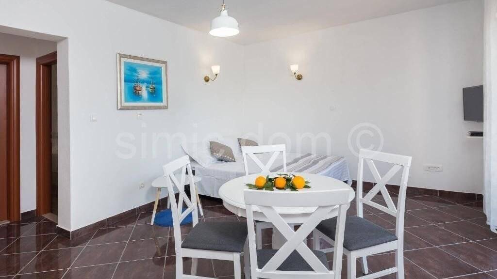 Zum Verkauf steht ein komplett möbliertes, ausgestattetes und gepflegtes Haus in einer der schönsten und ruhigsten Buchten entlang der gesamten mitteldalmatinischen Küste. Die Gesamtfläche des Hauses beträgt 165m2 und besteht aus einem Erdgeschoss und dem ersten Stock. Im Erdgeschoss befindet sich ein Studio-Apartment. Diese Ebene des Hauses bietet auch eine schöne Terrasse, eine Liegewiese und zwei Zonen für angenehme Essensmomente. Im Obergeschoss befinden sich zwei Apartments mit einem Schlafzimmer, jeweils 40 m² groß. Beide haben Zugang zu einer großen Terrasse von 47m2, die einen spektakulären Blick auf das Meer, die Bucht und die umliegenden Inseln bietet. Ein besonderer Vorteil dieser Immobilie ist ein gepflasterter Außenbereich mit einem sorgfältig gepflegten Garten. Parkplätze für vier Autos sind ebenfalls vorhanden. Ein weiterer Schwerpunkt liegt auf dem direkten Zugang zum Meer. Dies ist ein einzigartiges Anwesen, nur 50 m vom kristallklaren Meer entfernt, also eine ideale Wahl für Ihren erholsamen Urlaub, aber auch als Mietobjekt.