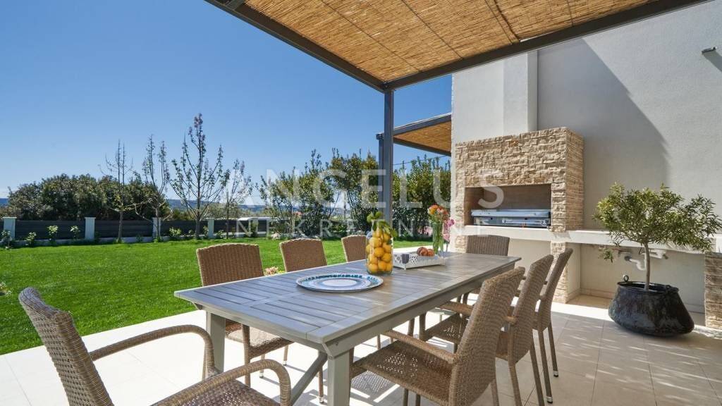 Diese moderne Luxusvilla aus dem Jahr 2022 mit einer Gesamtwohnfläche von 180 m2 befindet sich auf einem attraktiven Grundstück von 1.012 m2, mit wunderschönem Blick auf das Meer. Die charmante und unwiderstehliche Immobilie strahlt eine harmonisch nuancierte Portion Schönheit und Design aus, wobei beim Bau auf die nötige Privatsphäre und den nötigen Komfort geachtet wurde. Die Villa besteht aus einer offenen Küche, einem Esszimmer und einem geräumigen Wohnzimmer, die sich im Erdgeschoss der Villa befinden und durch große, durchgehende Glaswände perfekt mit dem Außenpool verbunden sind. Auf derselben Etage befinden sich vier geräumige Zimmer, von denen jedes über ein eigenes Badezimmer verfügt. Auf dem Dach gibt es eine Außenterrasse zum Entspannen mit Blick auf das Meer.