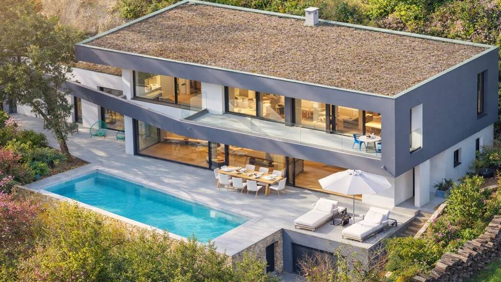 Remarkable contemporary villa for sale, ideally located in Saint-Marc-Jaumegarde, less than five minutes from the Cours Mirabeau in Aix-en-Provence.