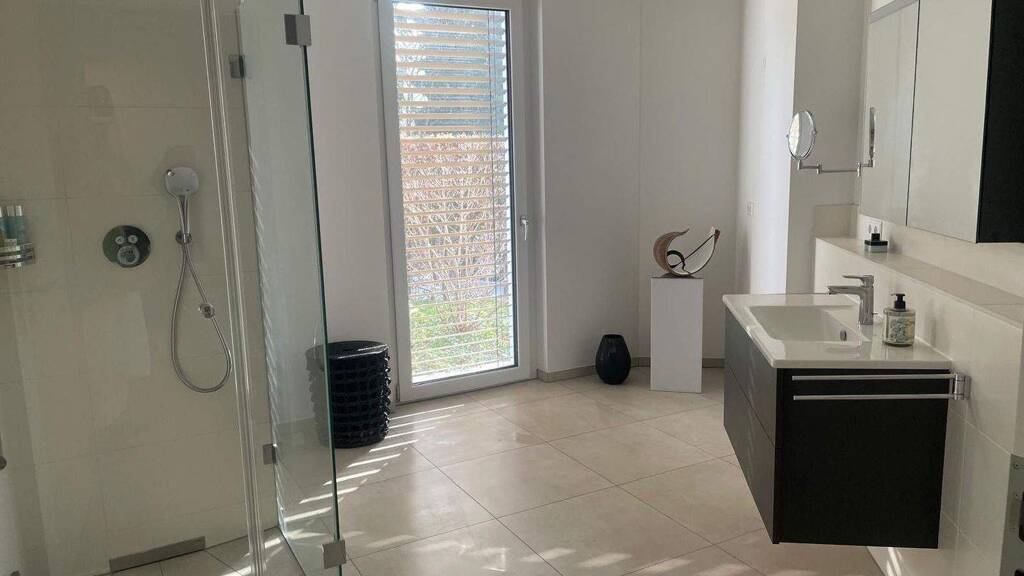 Eine Fußbodenheizung in allen Räumen sorgt für behaglichen Wohnkomfort, während die bodenebene Dusche und die hochwertige Fliesenausstattung ein modernes und zeitloses Ambiente unterstreichen. Eine Videosprechanlage bietet zusätzlichen Komfort und Sicherheit.