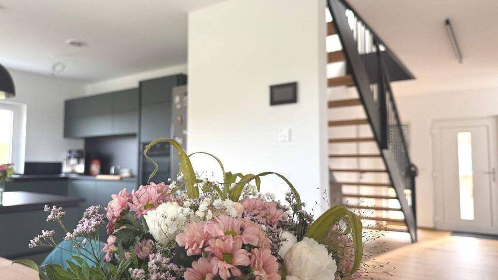 Ausstattungsdetails: - Massive Designer- Holztreppe - Eiche Echtholzdielen - Luft-Wasser-Wärmepumpe (neuester Standard) - Fussbodenheizung - Be- und Entlüftungsanlage - PV-Anlage (8 kWp) mit großem Speicher - Rollläden: elektrisch - Glasfaserkabelanschluss - Großes Designer-Bad mit zwei Zugängen - 7.000 Liter Zisterne mit Tauchpumpe und Wasseranschluss - uvm.