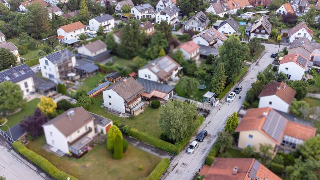 Das ca. 415,34 m² große, nach Süd-Osten ausgerichtete Grundstück befindet sich in absolut ruhiger, familienfreundlicher Wohnlage. Es handelt sich um den hinteren Teil eines insgesamt ca. 722 m² großen Gesamtgrundstücks, welches im Zuge des Verkaufs real geteilt und auf zwei separate Grundstücke aufgeteilt werden soll. Das vordere Grundstück ist derzeit unbebaut und kann mit einem Einfamilienhaus mit ca. 190 m² Wohnfläche bebaut werden. Der Erwerb beider Grundstücke ist ebenfalls möglich.