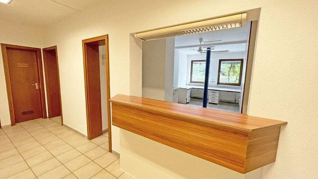 Die Räumlichkeiten zeigen einen gepflegten Zustand und bieten insgesamt rd. 136 qm an Praxis-, Büro- oder Gewerbefläche. Diese verteilt sich auf das komplette Erdgeschoss. Weiter ist ein Kellerraum vorhanden, der zu Lagerzwecken genutzt werden kann.