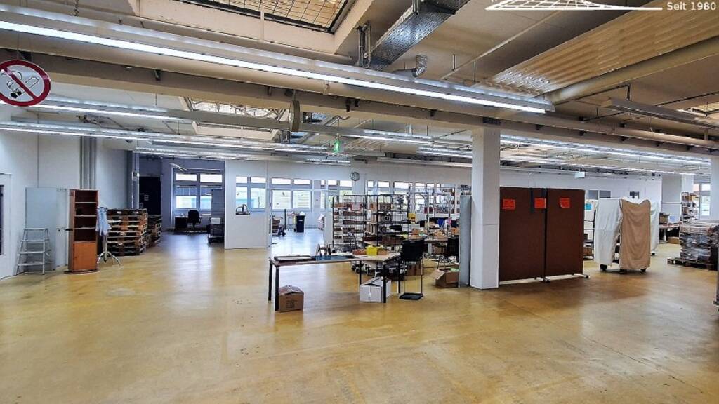 Produktion/Werkstatt/Archiv/Gewerbe-u. Büroflächen (im Gebäude 2-4) im 1. Obergeschoss mit 1.568 m²auch für leichte Fertigung u. Lager geeignet (teilbar ab 500 m²) inklusive WC-Anlagen , Sozial-Lounge-Bereich, integrierter Küche u. Nebennutzflächen. - Bodentragkraft 1 Tonne - Deckenhöhe 2,9 m