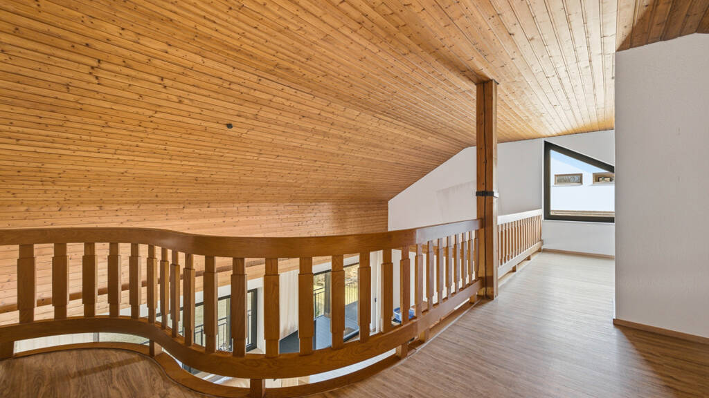 Im Obergeschoss stehen zwei große Kinderzimmer zur Verfügung. Ein zusätzlicher Speicherraum bietet wertvolle Abstellfläche für alles, was im Familienleben schnell zusammenkommt. Die lichtdurchflutete Galerie kann als Büro oder Leseecke wunderbar genutzt werden.