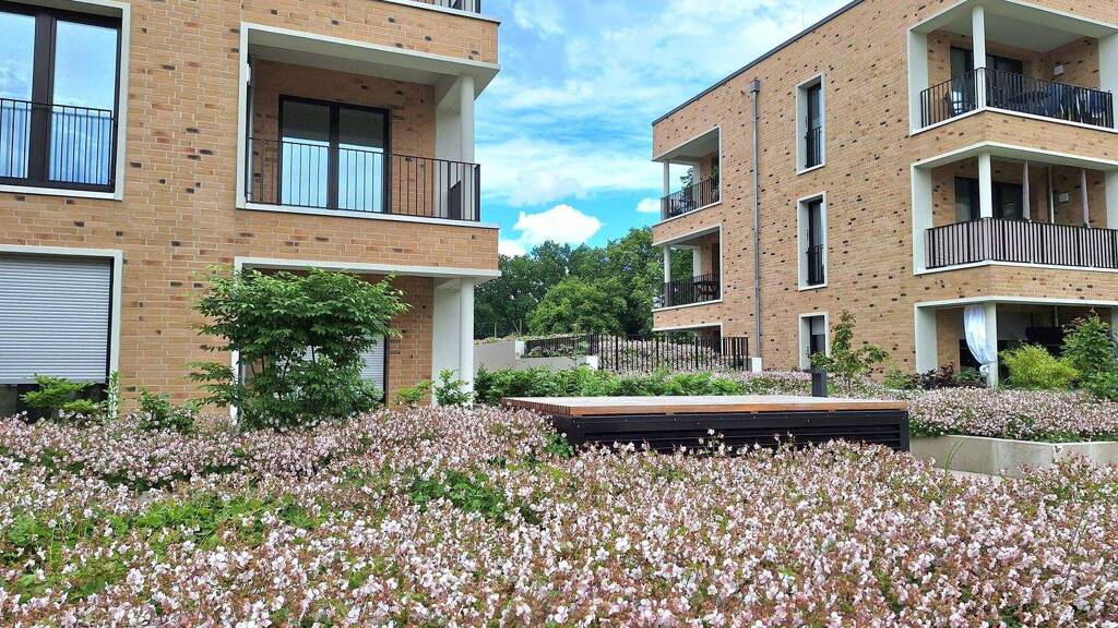 Eingebettet in anspruchsvoll entworfene Grünanlagen und umgeben von einem gewachsenen Stadtteil bietet das neue Wohnquartier der Delta Bau AG alles, was man sich zum Wohlfühlen wünscht.