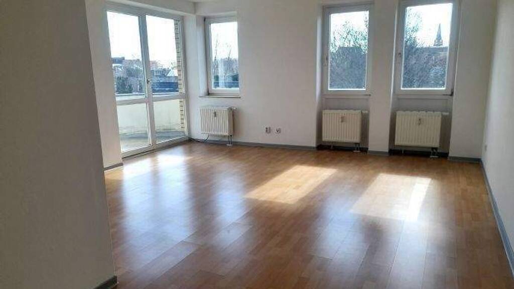 Die Wohnung verfügt über einen hellen und großzügigen Wohnbereich mit angrenzendem Balkon. Die Küche ist über den Flur und das Wohnzimmer begehbar. Die darin befindliche Einbauküche ist in warmen Holztönen gehalten und mit Elektroherd mit Backofen, Kühlschrank, Spüle und Geschirrspülgerät ausgestattet.