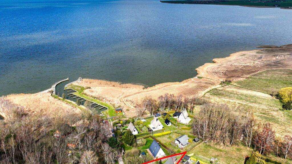 Inmitten einer Ansiedlung nur weniger Häuser befindet sich diese idyllische Liegenschaft im Ort Langendamm, einem Ortsteil von Ribnitz-Damgarten. Das Grundstück von ca. 412 m² liegt nur wenige Meter vom Saaler Bodden entfernt. Die Finnhütte wurde im Jahr 1998 erbaut und im Jahr 2000 um einen Anbau, in dem sich die Küche befindet, erweitert. Das Dach des Anbaus inkl. Dämmung und Begrünung wurde 2023 saniert.