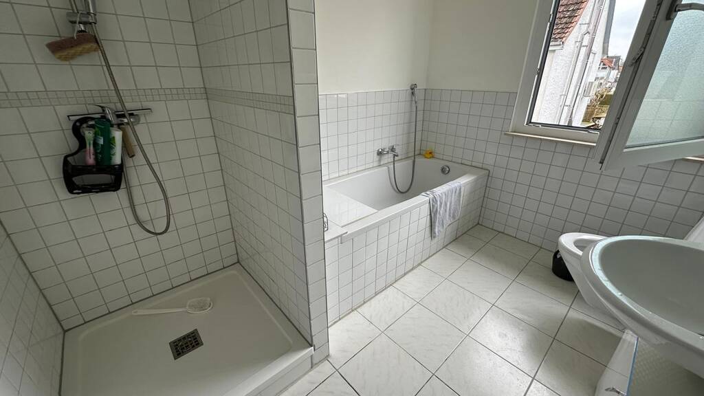 Das Hauptschlafzimmer ist eine private Oase der Ruhe, während das weitere Zimmer flexibel als Gästezimmer, Arbeitszimmer oder Kinderzimmer genutzt werden könnte. Ein modernes und hell gefliestes Badezimmer mit neuwertiger begehbarer Dusche und Wanne plus Fenster komplettiert die Wohnung und bietet mit seiner modernen Ausstattung einen Ort der Entspannung.