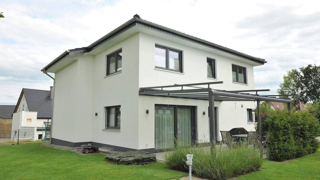 Errichten könnten Sie hier zum Beispiel unser Haus NOVA - unsere XL-Stadtvilla. Großzügiges Wohnen & Leben ist in der Planung sowohl im Erd- als auch im Obergeschoss berücksichtigt worden. Durch eine mögliche Umgestaltung des Obergeschosses lässt sich sogar noch ein weiteres Zimmer verwirklichen und der Vorrat im Erdgeschoss kann zu einem praktischen Arbeitszimmer umfunktioniert werden. Ebenso könnte mit einer zusätzlichen Wand und einer schicken 2-flügeligen Glastür zwischen Wohnen und Essen ein ruhiger Rückzugsort geschaffen werden. Lassen Sie auch Ihre Ideen Wirklichkeit werden. Gerne erhalten Sie bei uns eine kompetente und ansprechende Beratung. Bitte beachten Sie, dass es sich bei der Anzeige um ein projektiertes Objekt handelt. Es ist noch nicht gebaut, dient lediglich als Muster und vermittelt Ihnen einen ersten Eindruck darüber, zu welchen Konditionen und in welcher Ausführung wir für Sie Ihren Neubau errichten können. Die individuelle Planung gem. Ihren Wünschen ist für uns selbstverständlich! Sprechen Sie uns an! Wir freuen uns auf Sie und Ihr Bauprojekt!