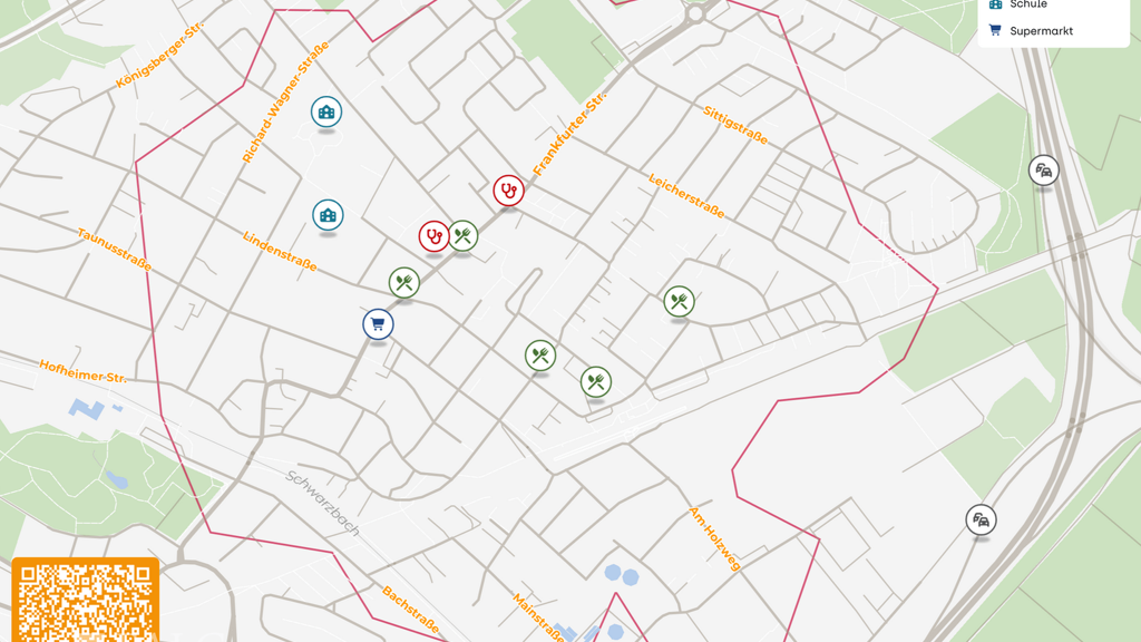 Die Wohnung liegt zentral in Kriftel. Fußläufig erreicht man Nahversorger und Supermärkte wie den Taunus Super Markt, Rewe und auch Aldi. Auch gastronomisch liegt die Wohnung in einer guten Lage. So liegen zum Beispiel das Restaurant Zagreb, ein Flammkuchen Restaurant und ein China Thai Bistro in der nahen Nachbarschaft.