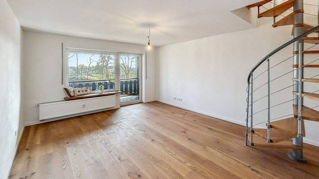 Ein besonderes architektonisches Highlight bildet die stilvolle Wendeltreppe, die beide Ebenen elegant miteinander verbindet und dem Objekt einen individuellen, nahezu hausähnlichen Charakter verleiht. Gleichzeitig bleibt die ursprüngliche Aufteilung erhalten, sodass bei Bedarf jederzeit eine Rückführung in zwei eigenständige Wohneinheiten möglich ist - ein klarer Vorteil im Hinblick auf flexible Nutzungskonzepte oder Kapitalanlage.