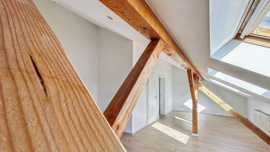Das Dachgeschoss begeistert zusätzlich mit einem offenen Raumgefühl und einem beeindruckenden Sichtdachstuhl, der den Räumen eine besondere Großzügigkeit sowie einen charmanten, wohnlichen Charakter verleiht und das hochwertige Gesamtbild der Immobilie eindrucksvoll unterstreicht.