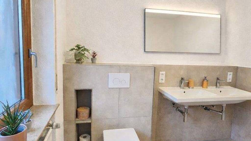 Ausstattung .renovierter Zustand .bezugsfrei ab Feb/März 2026 .zwei Balkone .Terrasse mit kleinem Grundstück .Garage .großzügige Küche .5 Zimmer .ausgebautes Dachgeschoss .Bad mit Badewanne und Duschmöglichkeit .Gäste-WC .zwei Kellerräume .Ölheizung (regelmäßig gewartet aus aus dem Jahr 2001) .Kunststofffenster 2-fach verglast von Hilzinger (Baujahr 2004)