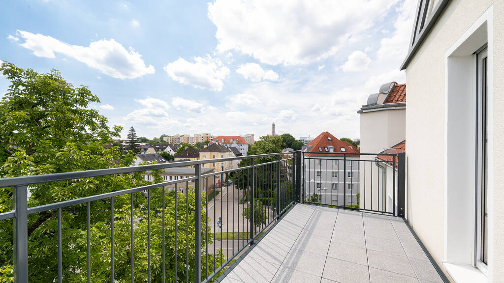 Ein Glasaufzug ermöglicht Ihnen einen barrierefreien Zugang zu allen Etagen des Gebäudes. Die lichtdurchflutete Wohnung verfügt über einen großzügigen Balkon, der ein offenes Raumgefühl und einen wunderschönen Ausblick ermöglicht. Hochwertige Böden aus Echtholzparkett und lichte Raumhöhen von bis zu 2,60 m schaffen maximalen Komfort und Luxus in den Wohnungen. Das Tageslichtbad ist gefliest und mit einer hochwertigen Sanitärausstattung sowie einer Duschwanne ausgestattet. Die Wärmeverteilung in sämtlichen Räumen der Wohnung erfolgt über eine Fußbodenheizung. Für zusätzlichen Komfort und Sicherheit sorgt eine moderne Video-Türsprechanlage mit elektrischem Türöffner. Ein Kellerabteil sowie ein Außenstellplatz gegen Aufpreis runden dieses Angebot ab.