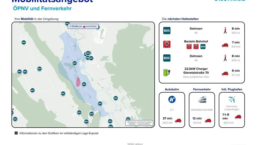 Einen Auszug aus unserem Lageexposee zu den Themen Einkaufsmöglichkeiten, Mobilität und Bildung finden Sie bei den Bildern.