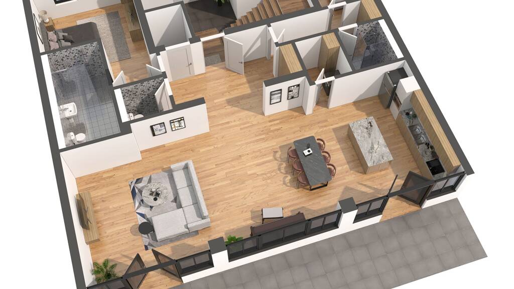 Die außergewöhnliche Wohnung befindet sich im Erdgeschoss des neu erbauten Gebäudeteils und bietet auf ca. 190m² Wohnfläche 3 attraktive Zimmer und eine über die gesamte Wohnungsbreite reichende Terrasse, direkt an der Herzogin Garten gelegen.